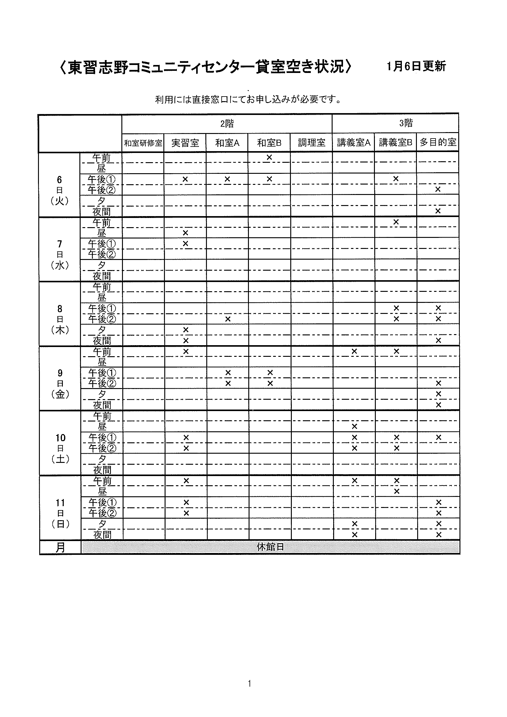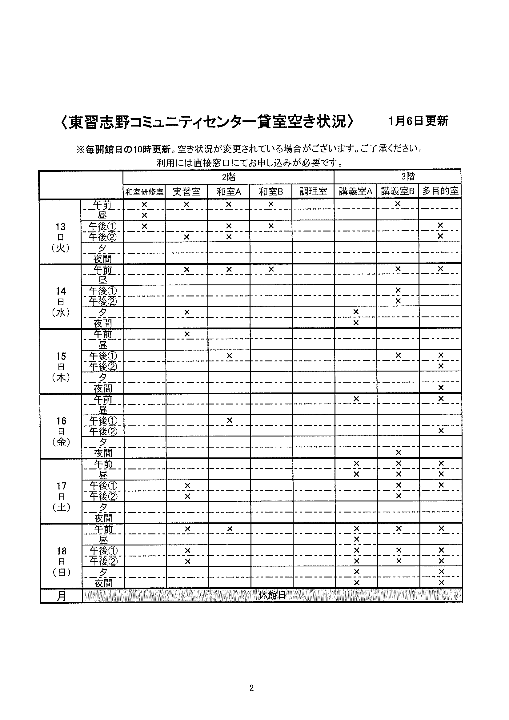 空き状況ページ|東習志野コミュニティセンター|であう・ふれあう・まなぶ場