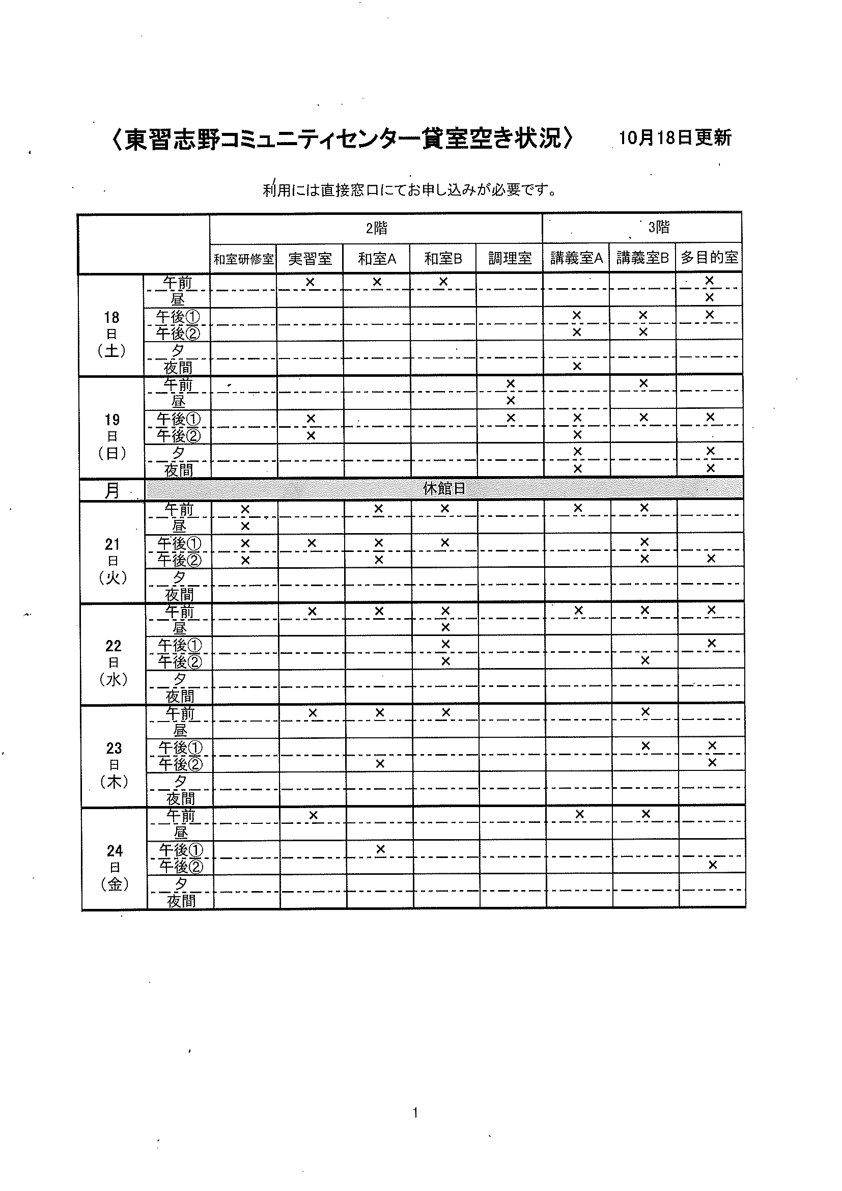 空き状況10/18~10/24