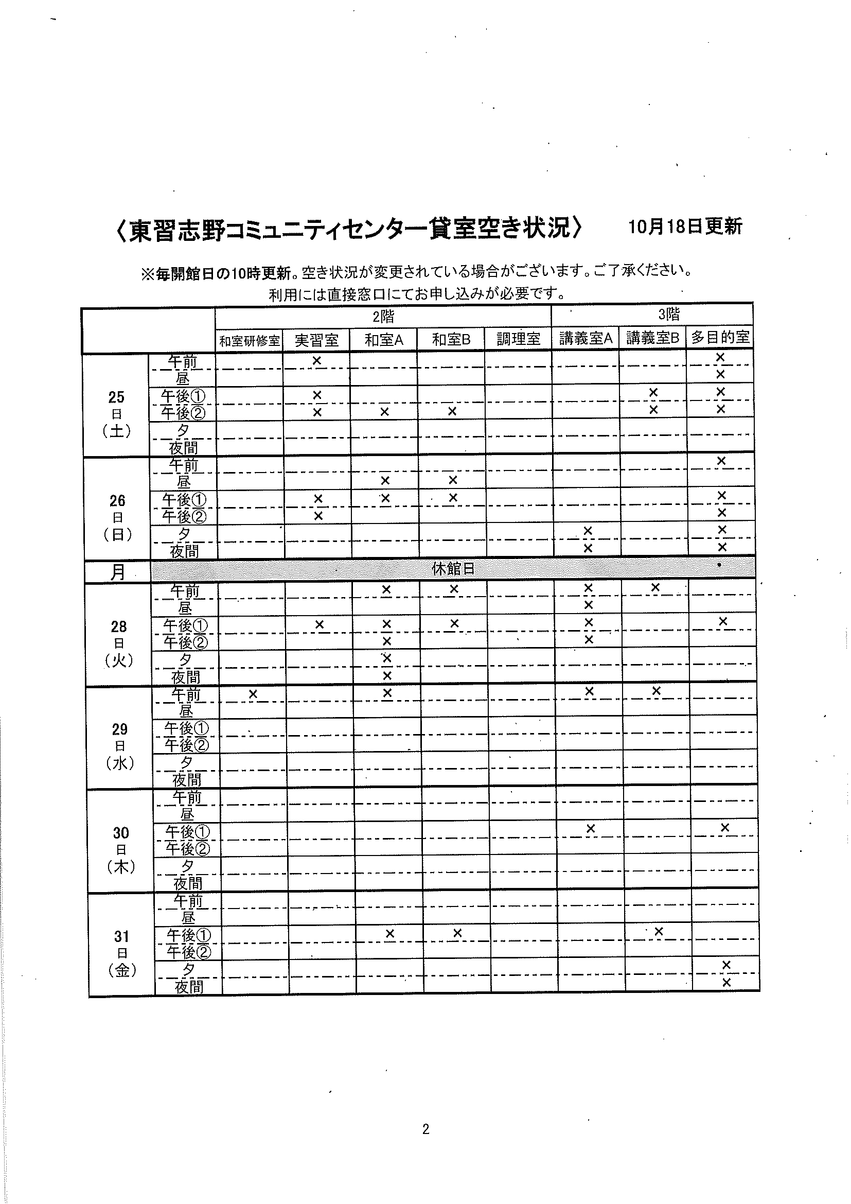 空き状況10/25~10/31