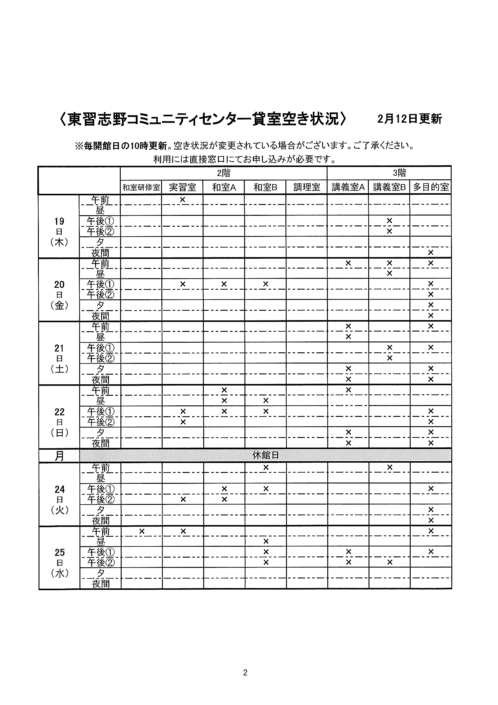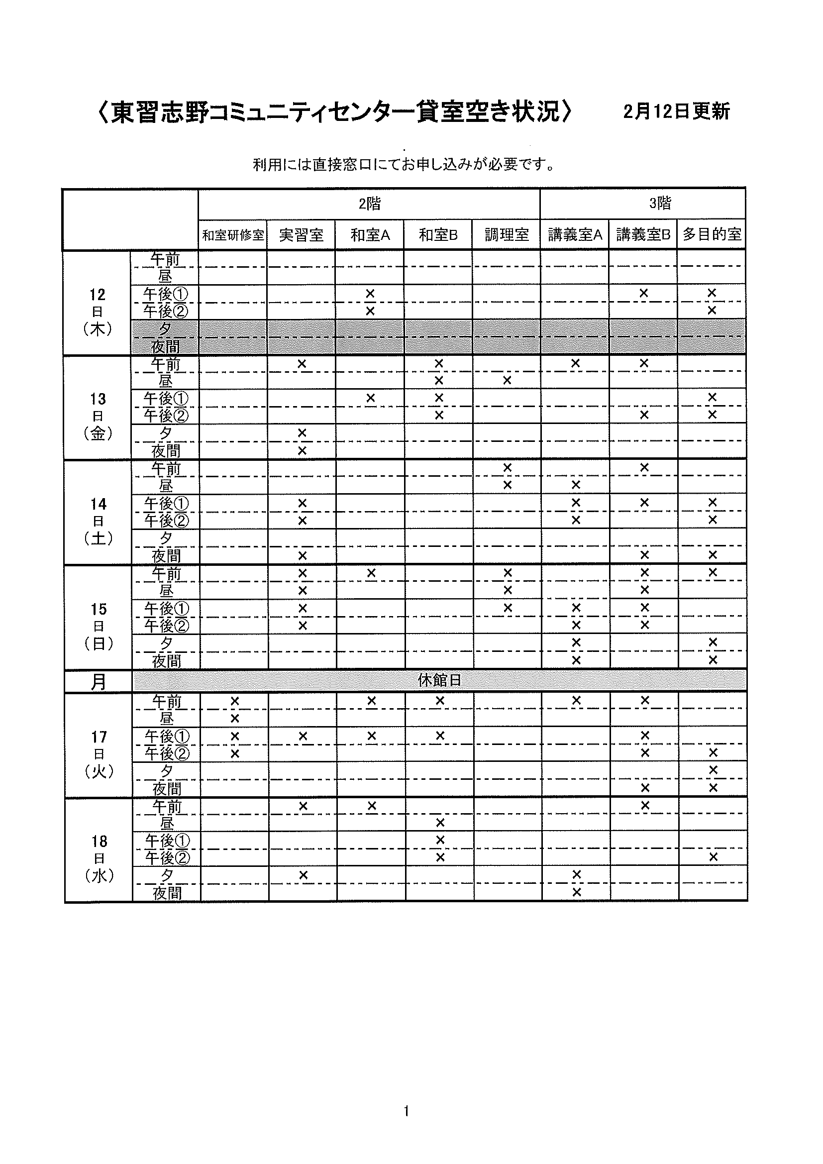 空き状況ページ|東習志野コミュニティセンター|であう・ふれあう・まなぶ場