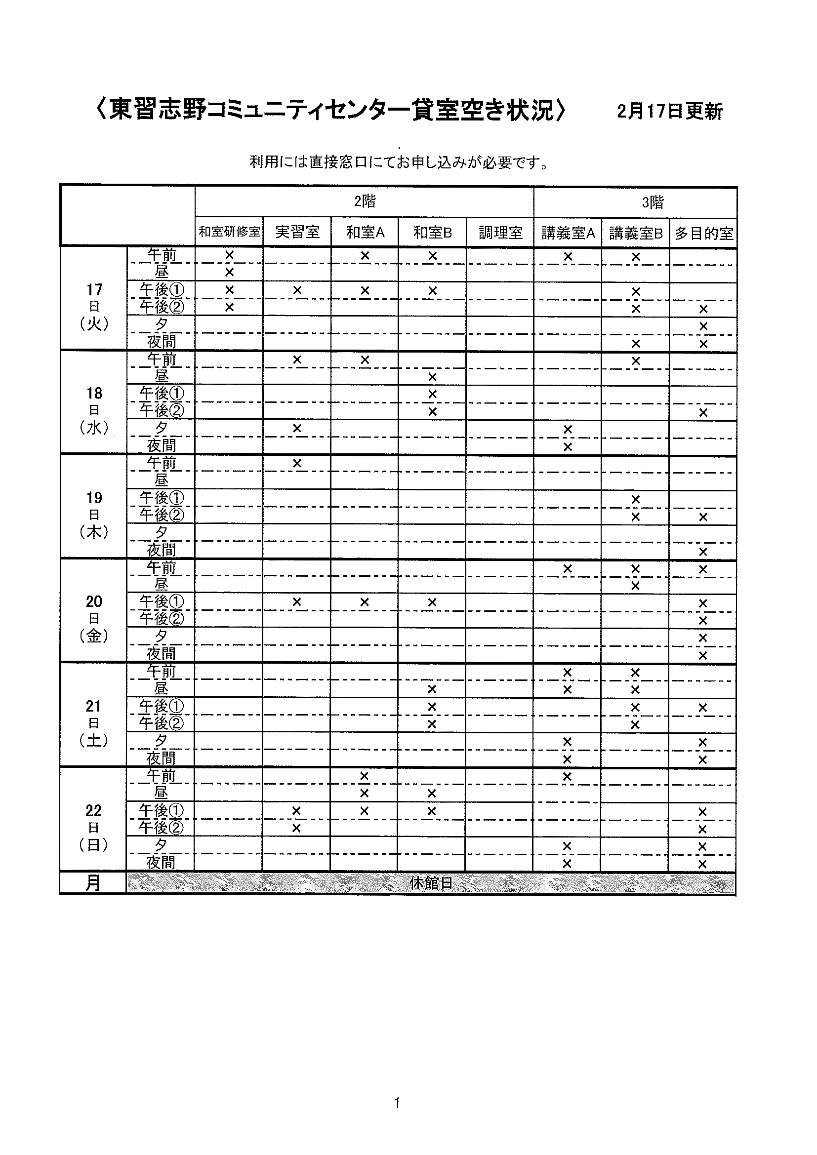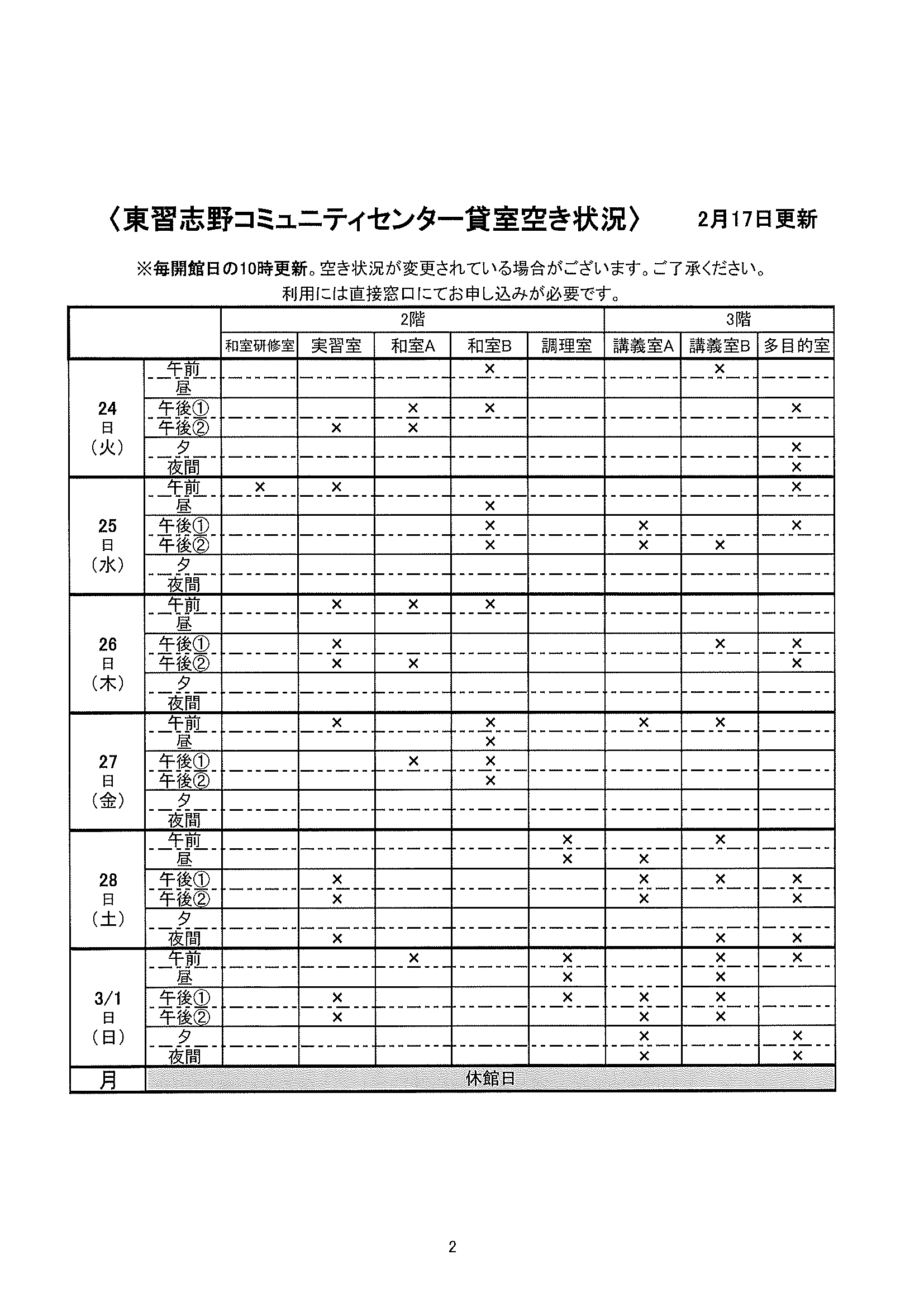 空き状況ページ|東習志野コミュニティセンター|であう・ふれあう・まなぶ場