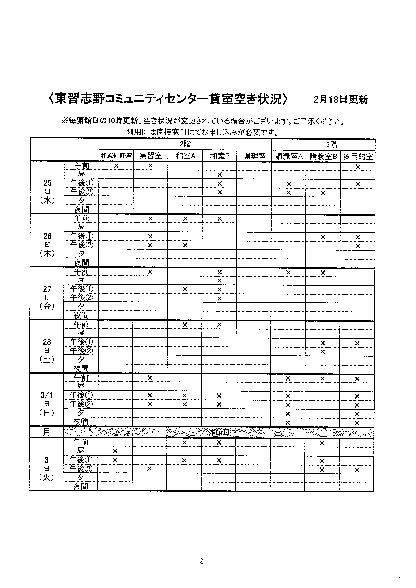 空き状況ページ|東習志野コミュニティセンター|であう・ふれあう・まなぶ場