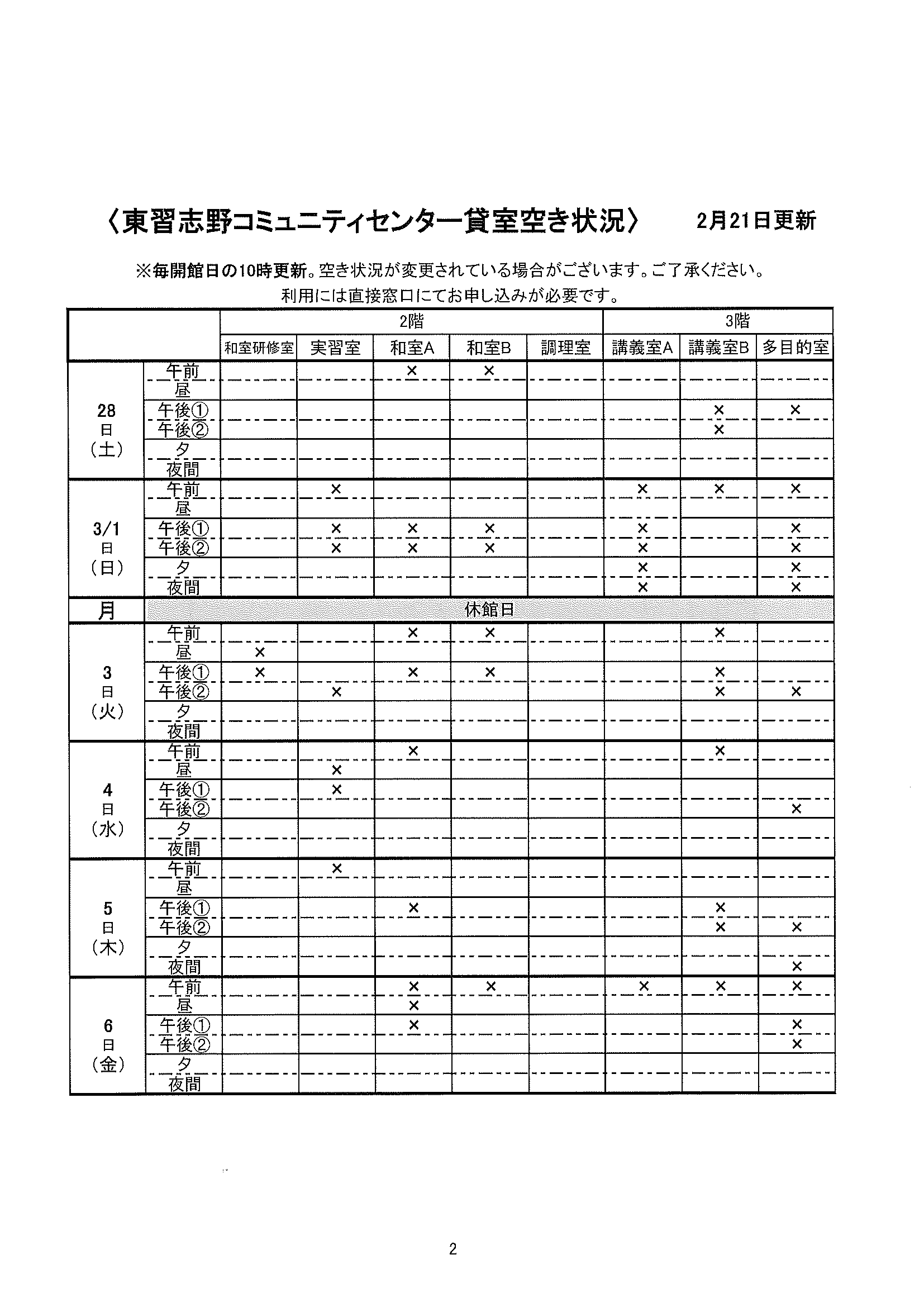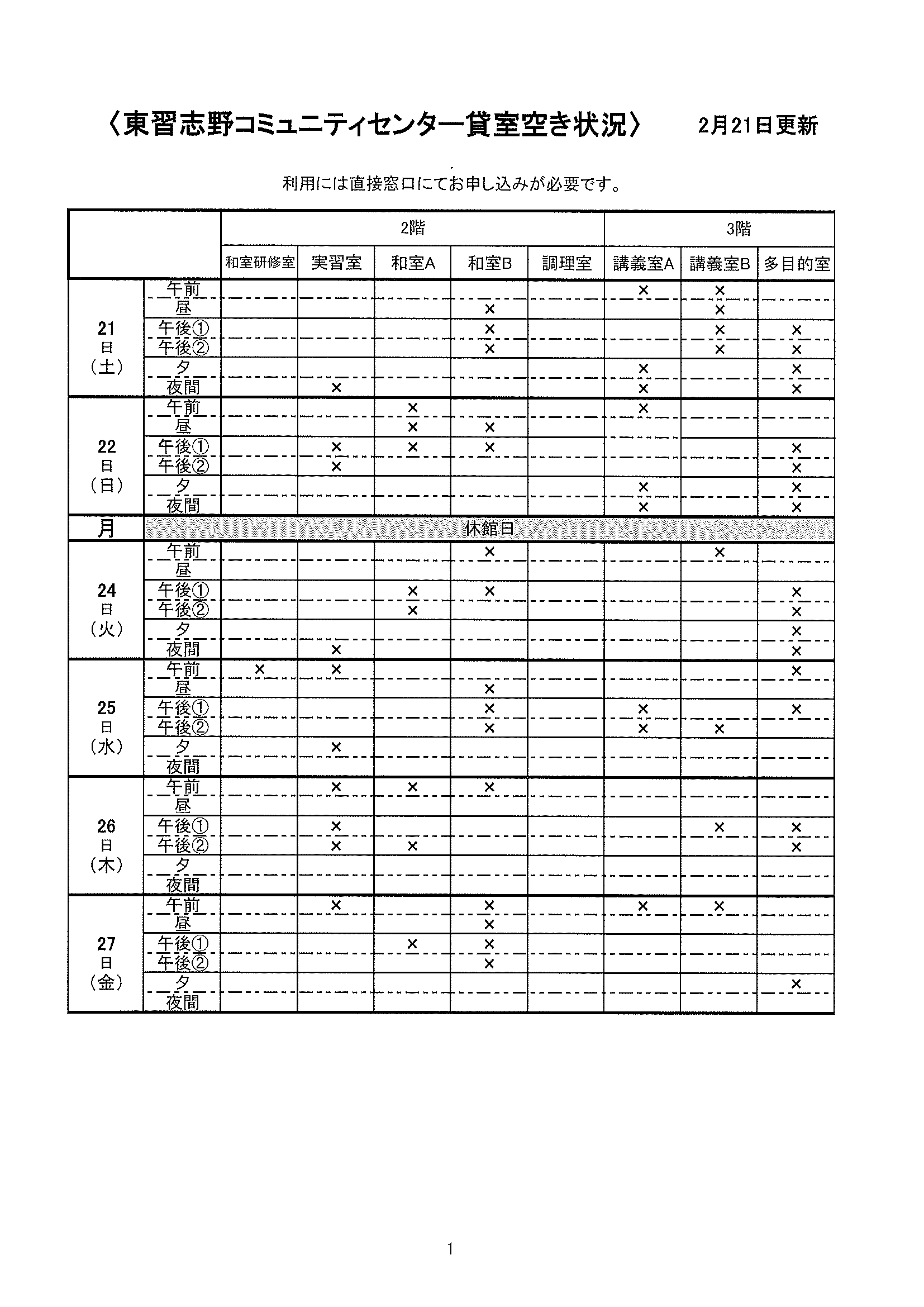 空き状況2/21~2/27