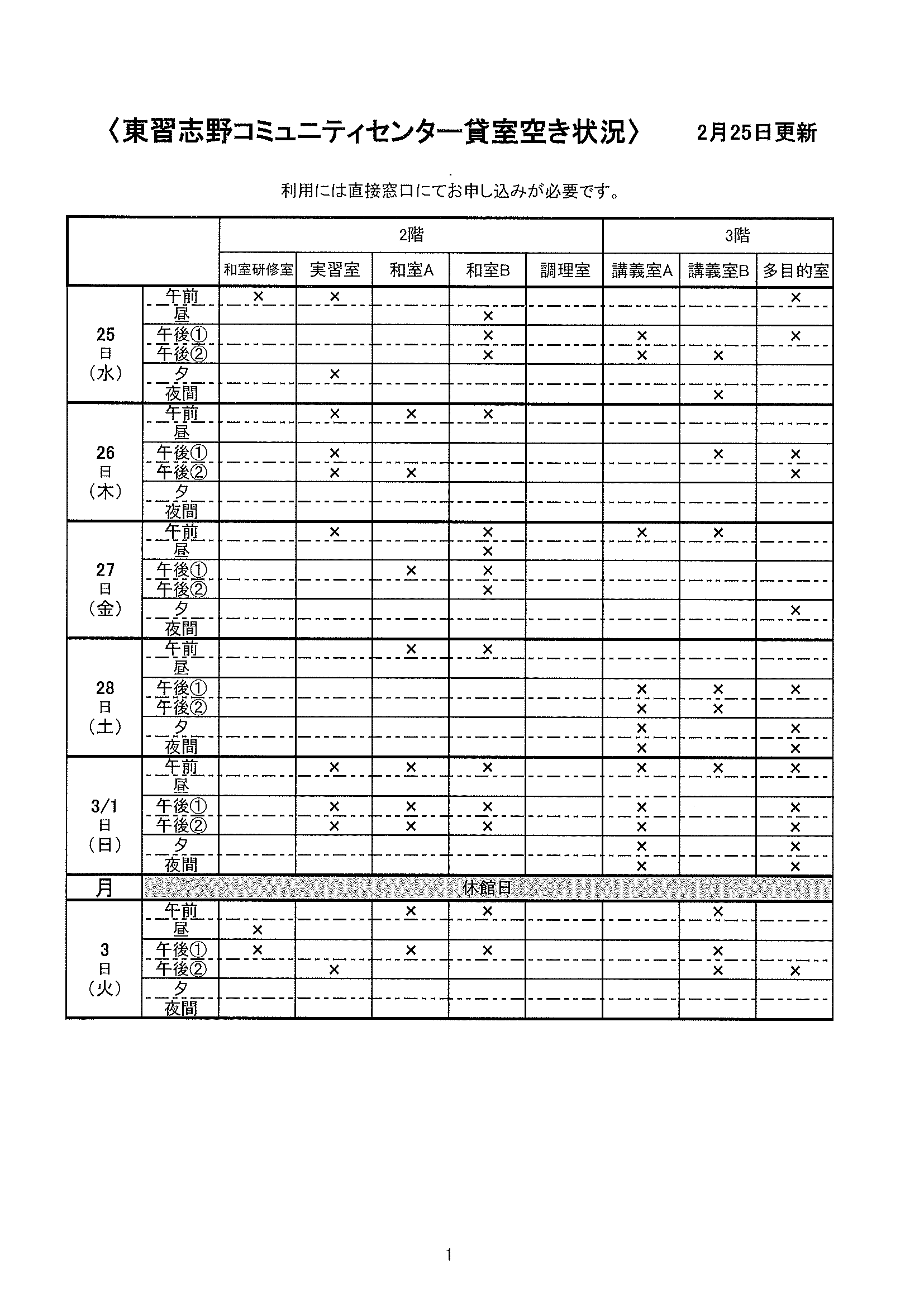 空き状況ページ|東習志野コミュニティセンター|であう・ふれあう・まなぶ場