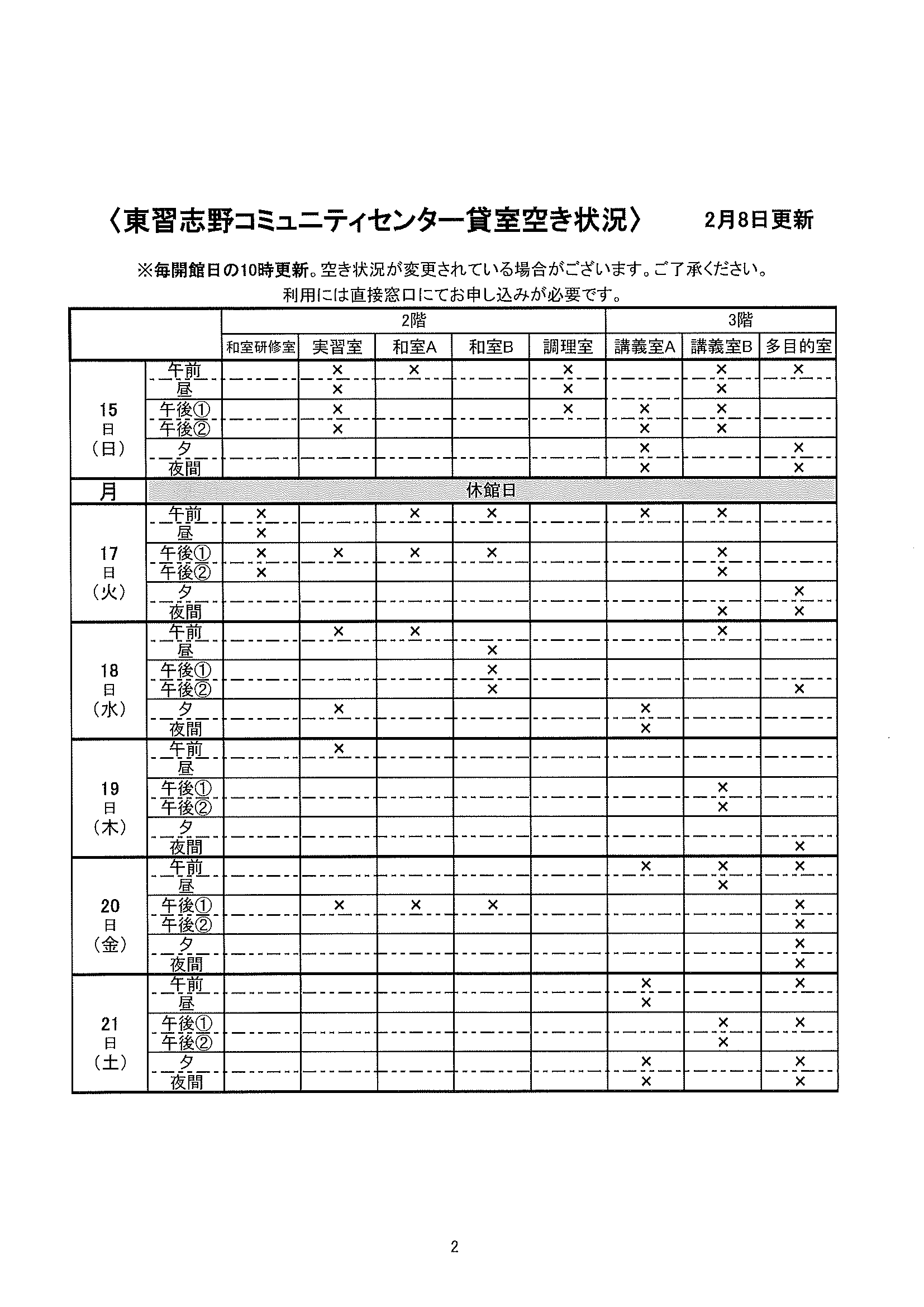 空き状況2/15~2/21