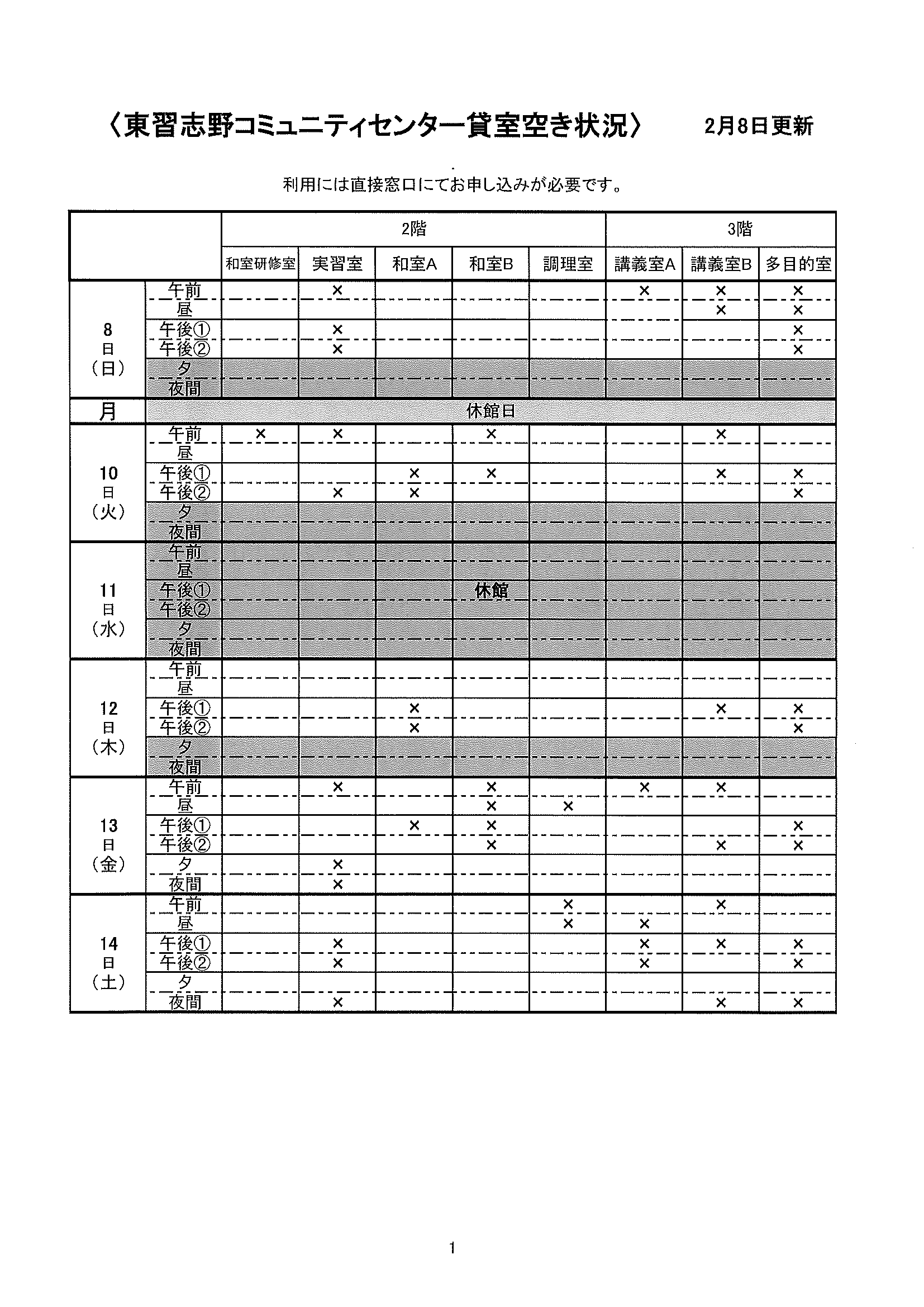 空き状況2/8~2/14