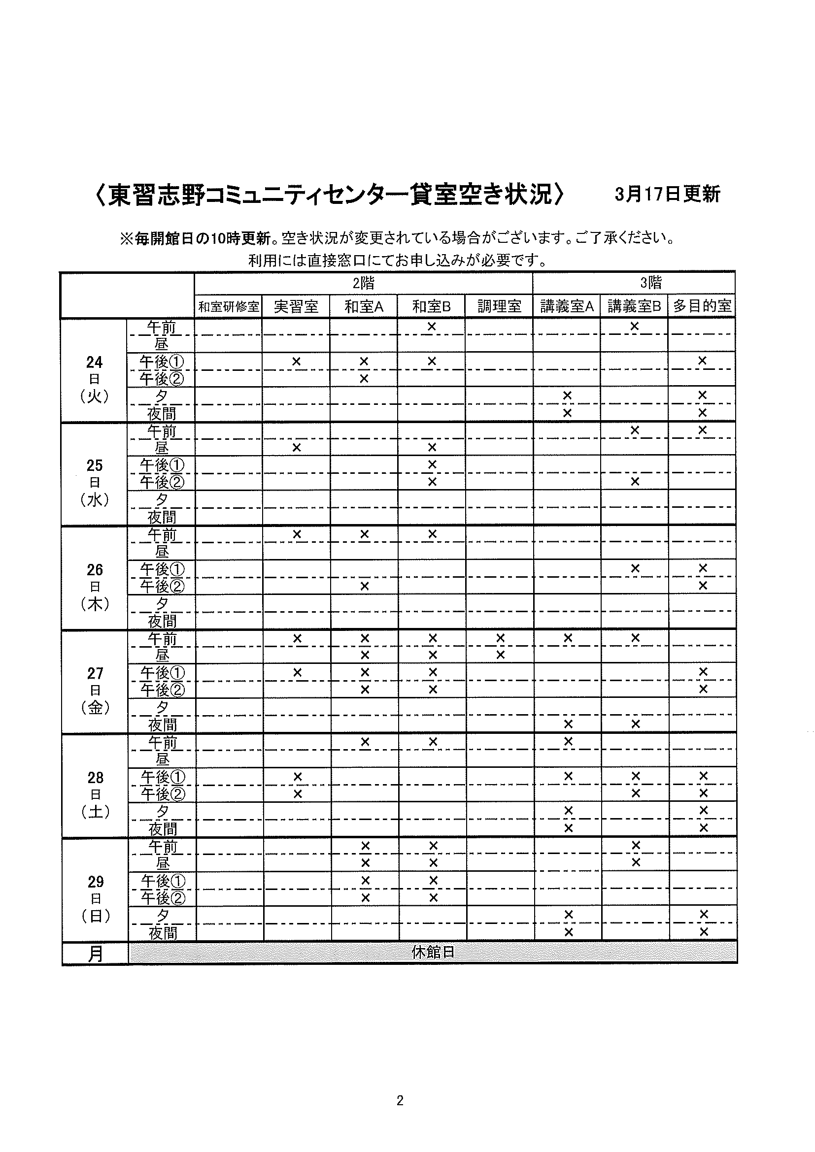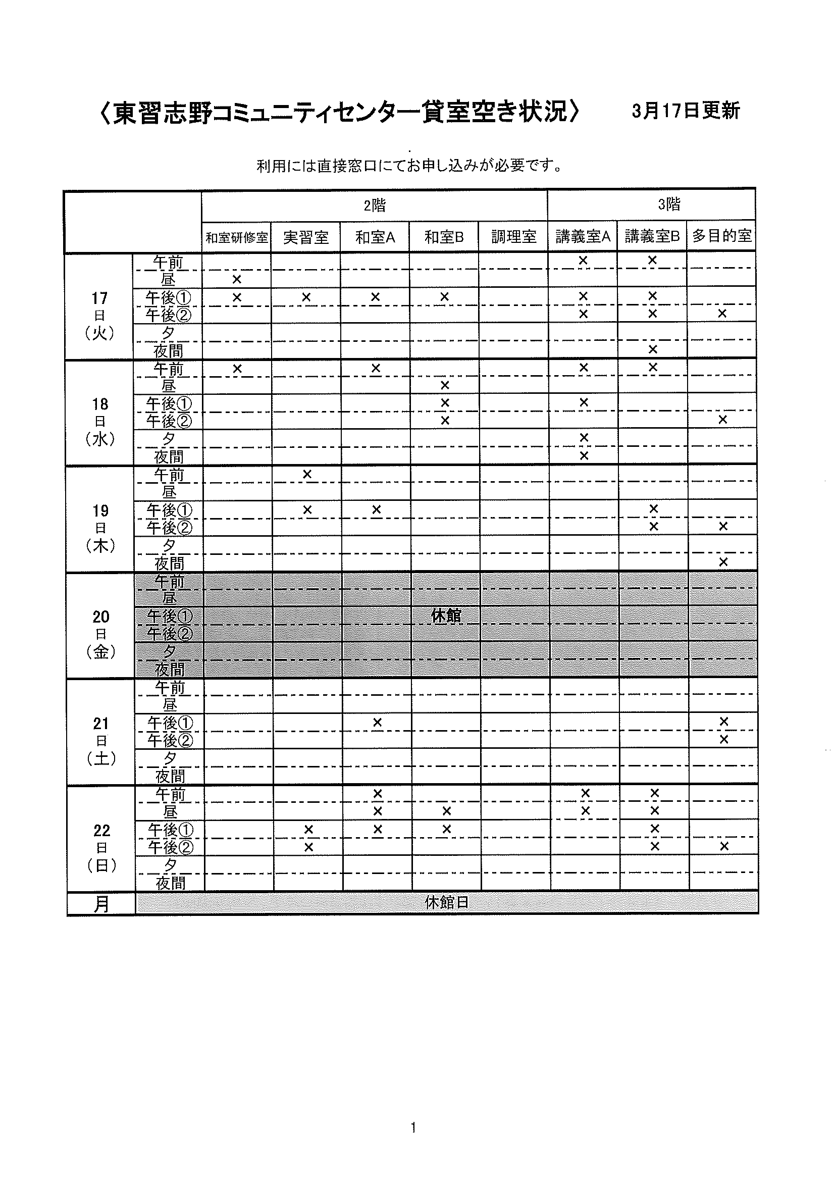 空き状況ページ|東習志野コミュニティセンター|であう・ふれあう・まなぶ場