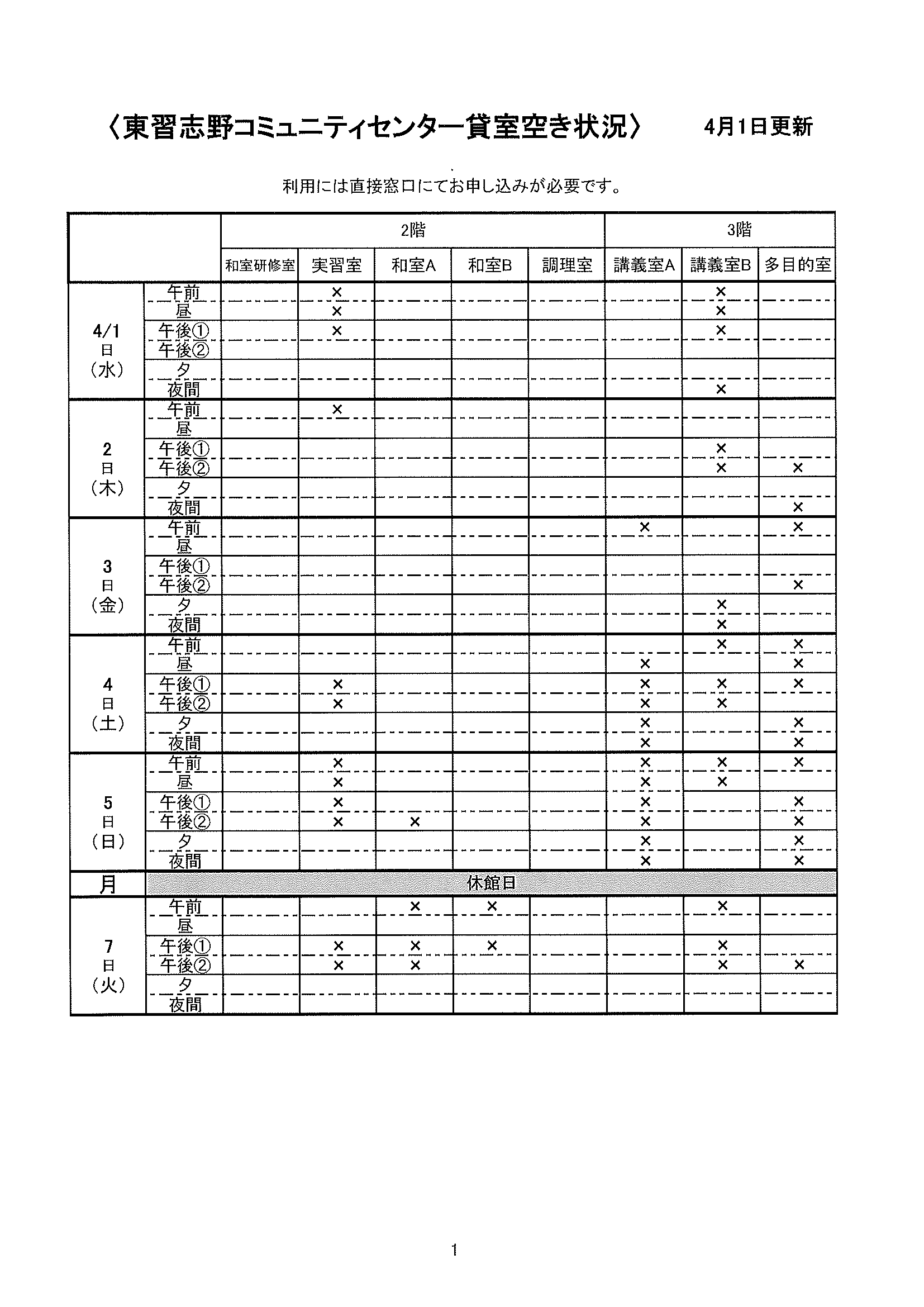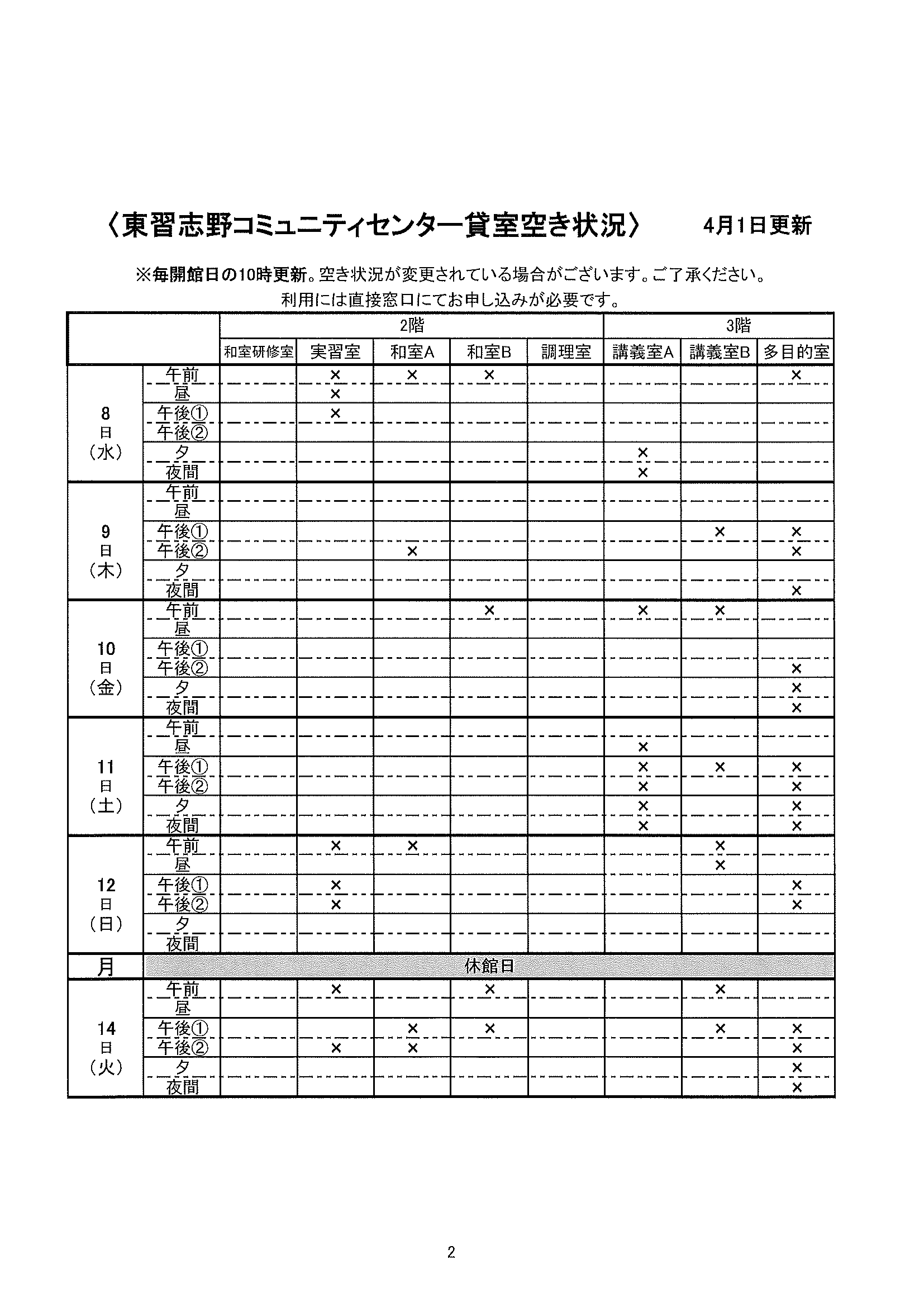 空き状況ページ|東習志野コミュニティセンター|であう・ふれあう・まなぶ場