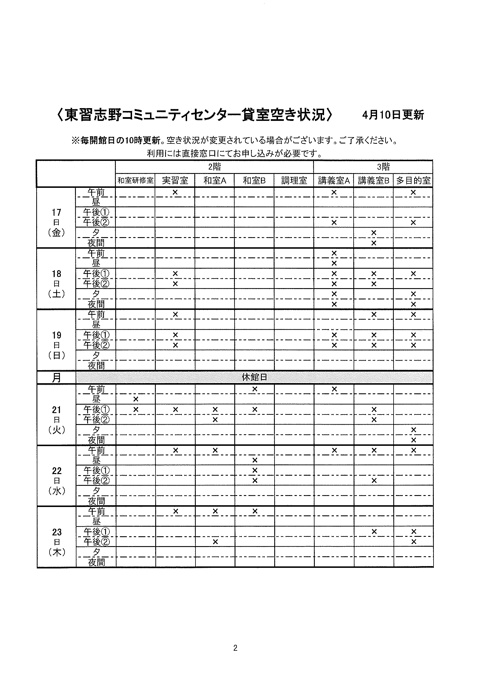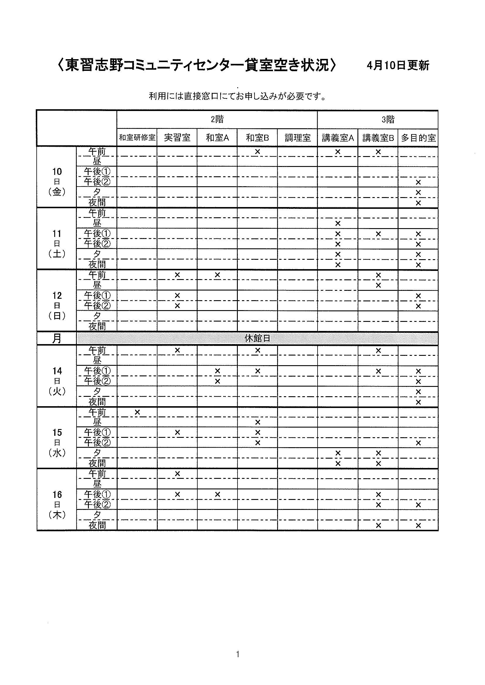 空き状況ページ|東習志野コミュニティセンター|であう・ふれあう・まなぶ場