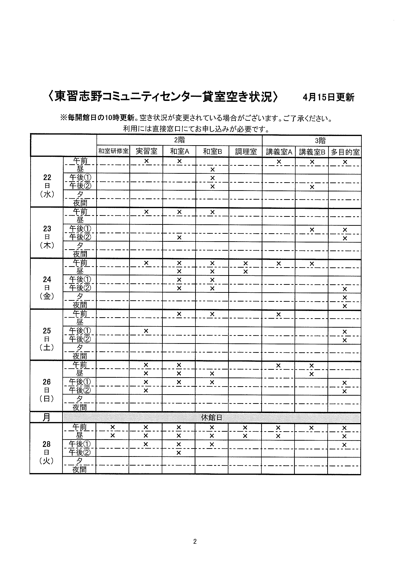 空き状況4/15~4/28