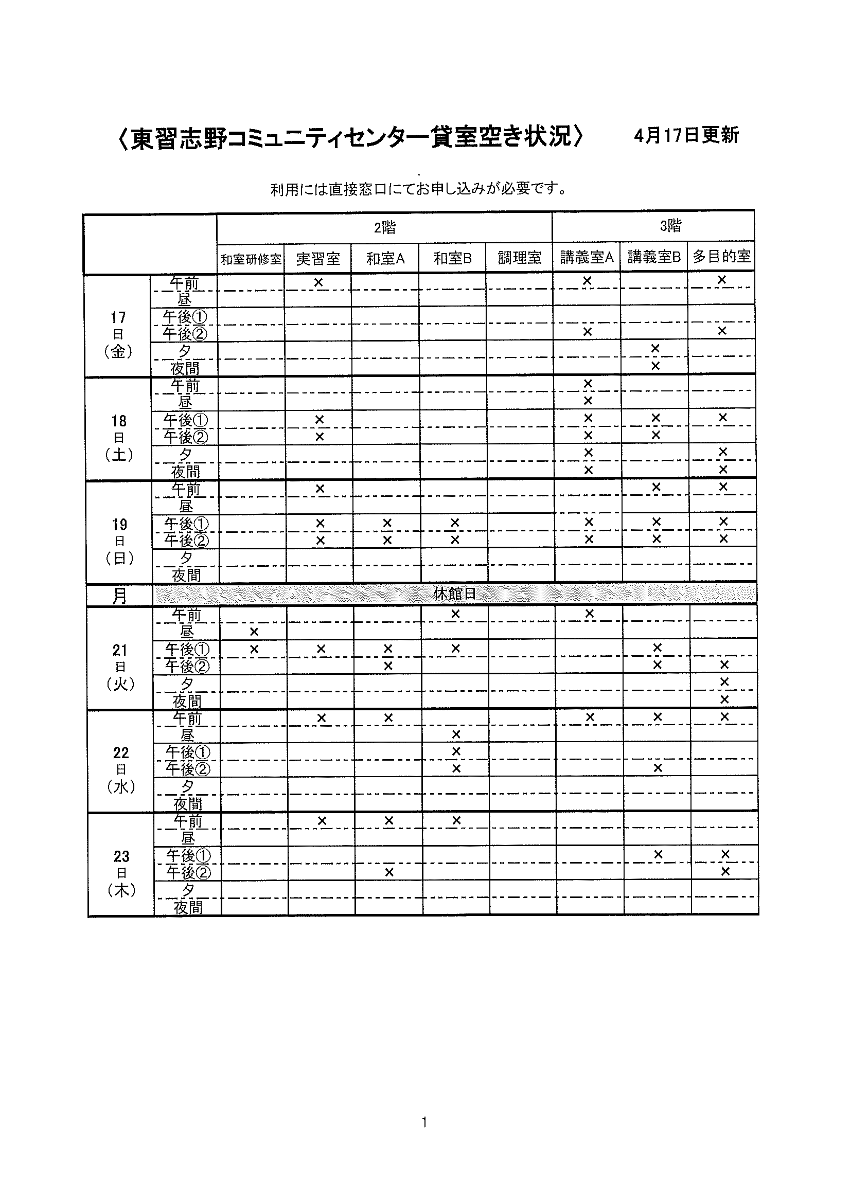 空き状況4/17~4/23