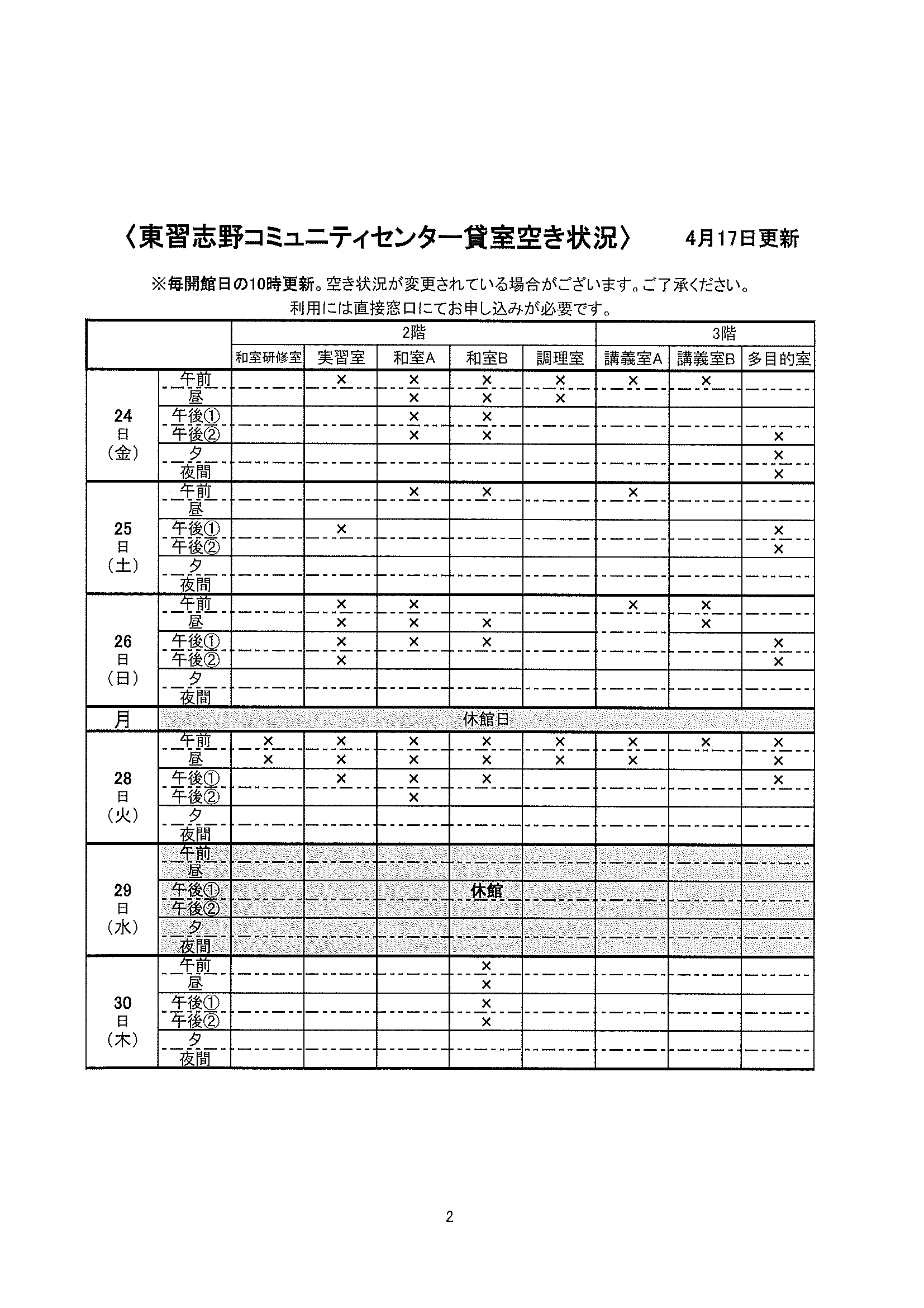 空き状況4/17~4/30