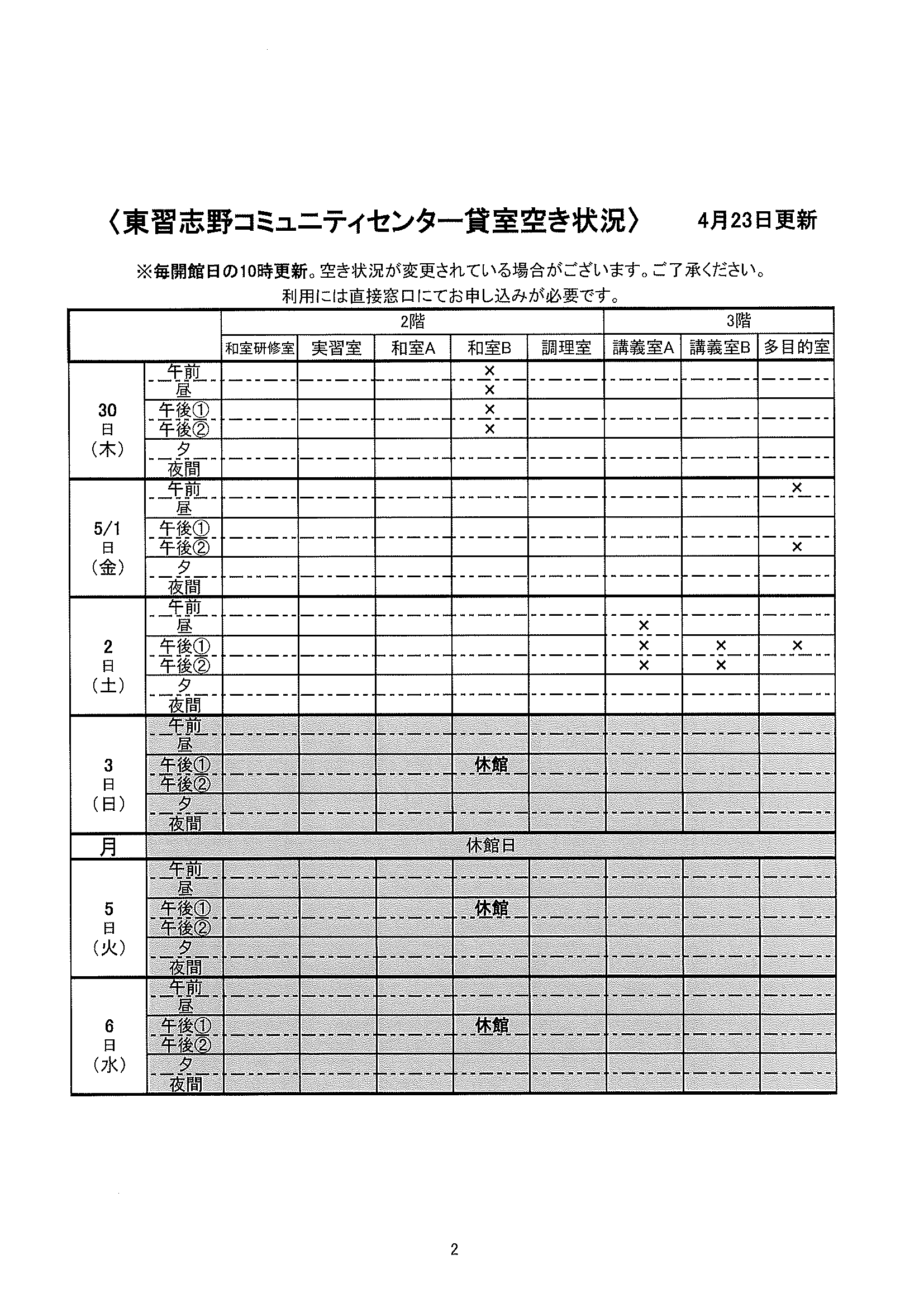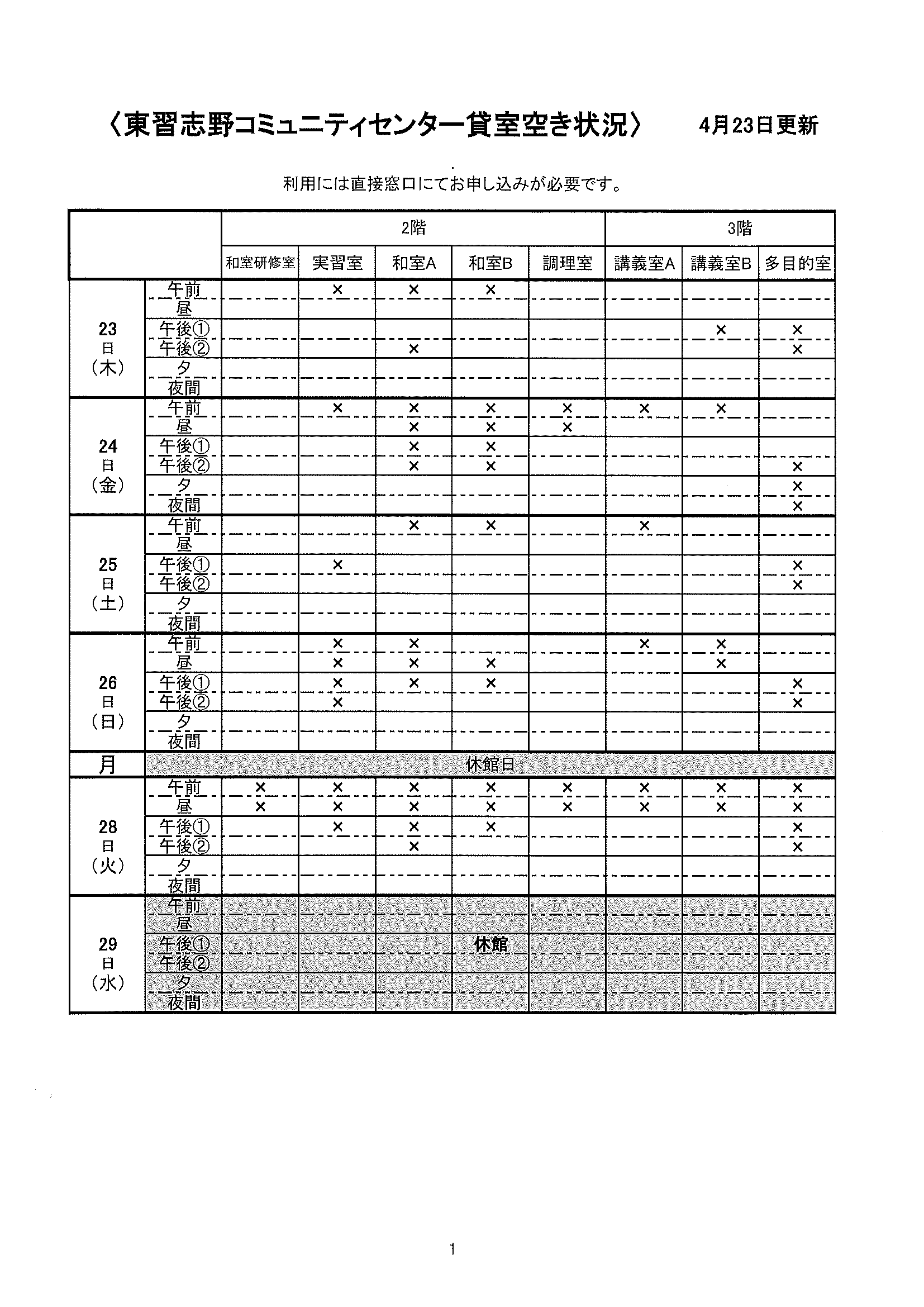 空き状況ページ|東習志野コミュニティセンター|であう・ふれあう・まなぶ場