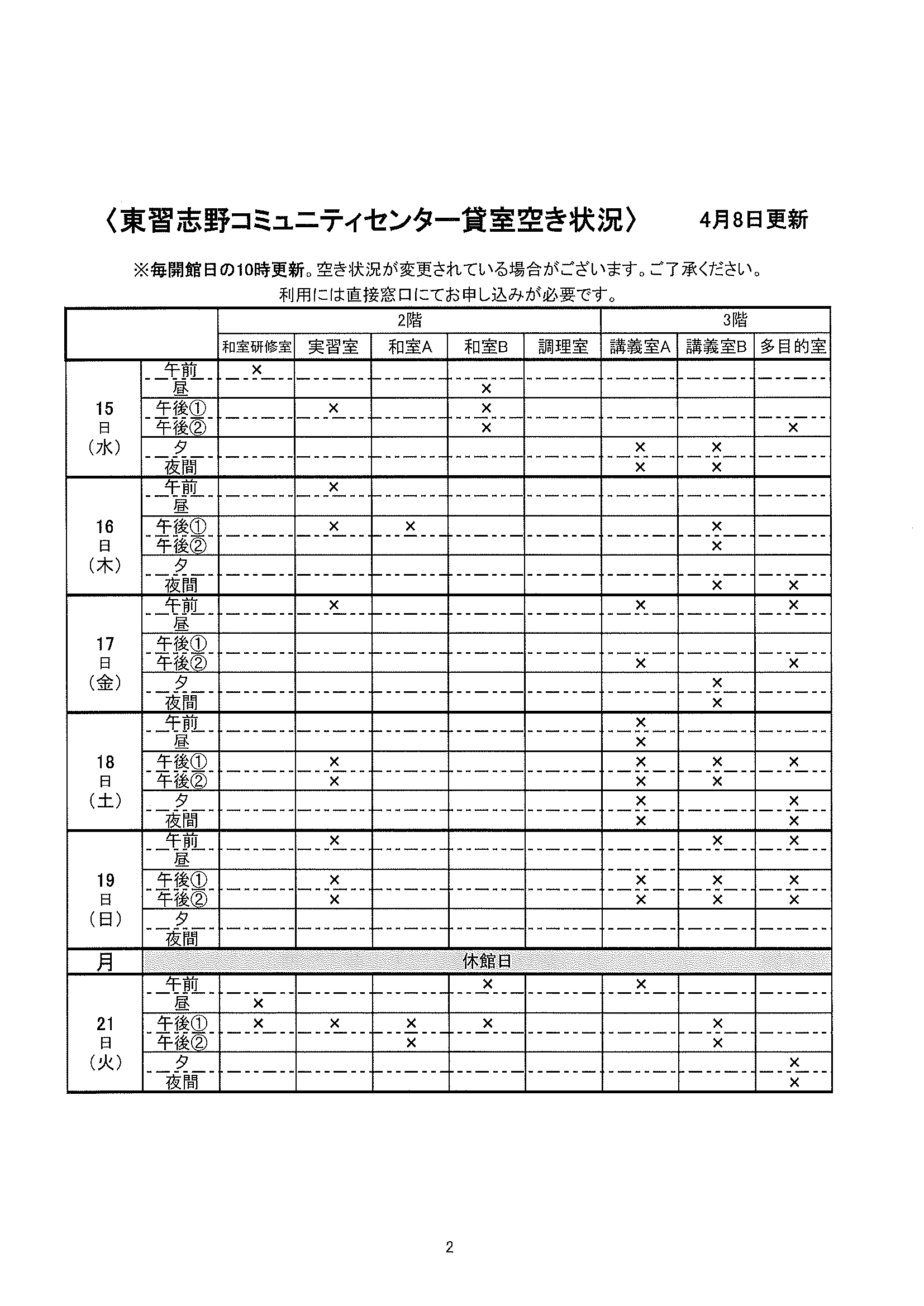 空き状況ページ|東習志野コミュニティセンター|であう・ふれあう・まなぶ場